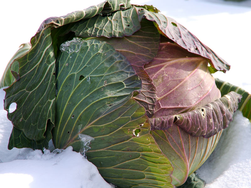 「冬のキャベツで紫色に変色した部分は、冬場の寒さでポリフェノールの一種、アントシアニンが生成された部分です。