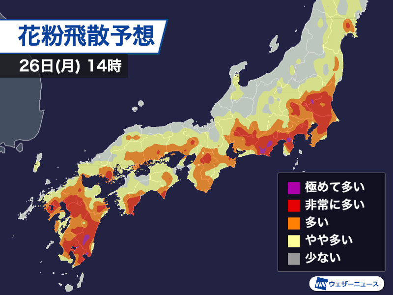 26日(月)午後の花粉飛散予想
