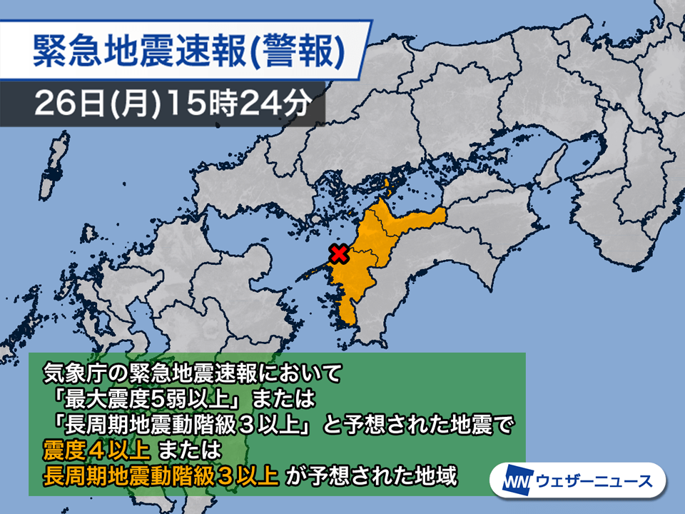 緊急地震速報(警報)の発表される条件は、「最大震度が5弱以上」または「長周期地震動階級3以上」と予想される地震で、「震度4以上」または「長周期地震動階級3以上」が予想される地域に対して発表されることになっています。(他にも詳細条件あり)