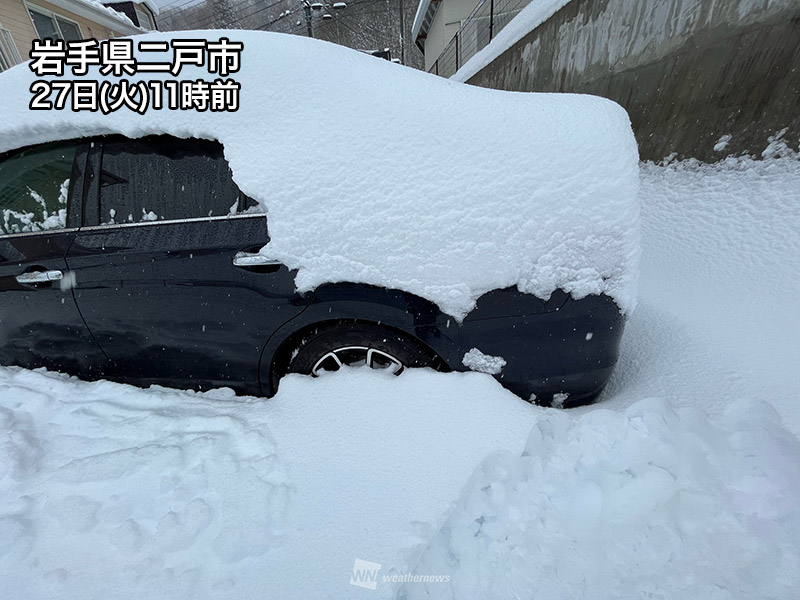 また、積雪深も観測が始まった1883年3月以来、史上9位の記録。上位8件はいずれも20世紀中に観測されており、21世紀になってからは最も多い積雪深です。岩泉(69cm)や久慈(58cm)でも観測史上4位の積雪深となっています。
