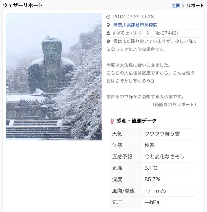 一方で、2012年は低気圧の通過する進路が本州の南の太平洋だったため、いわゆる「南岸低気圧」といわれる気圧配置になり、関東甲信を中心に雪が降りました。日降雪量は山梨県の河口湖で28cm、群馬県の前橋で17cm、栃木県の宇都宮で16cmを観測し、極寒の一日となりました。