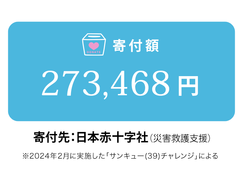 多くの方々にご賛同・ご参加いただき誠にありがとうございました。「サンキュー(39)チャレンジ」による2月の寄付額が確定しましたので、ご報告いたします