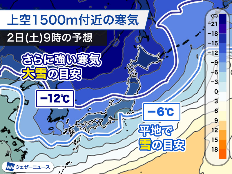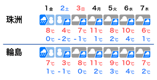 甲信の標高の高い地域や東北では湿った大雪になるおそれがあるので、積雪の急増や路面の悪化に注意してください。