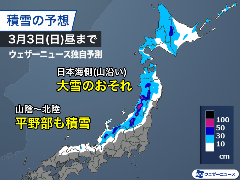 3月早々に強い冬型 日本海側は大雪 西日本でも積雪の可能性
