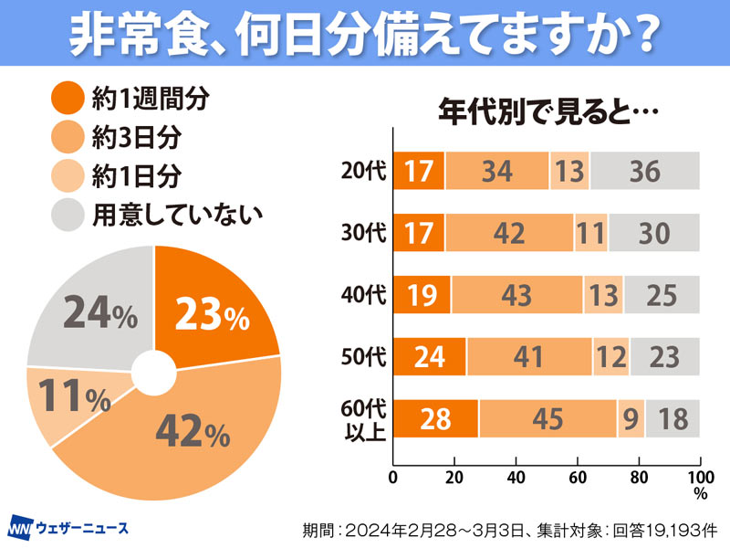 農林水産省は『災害時に備えた食品ストックガイド』(2019年)で、「最低3日分~1週間分×人数分の食品の家庭備蓄が望ましい」とし、さらに「ローリングストック」の重要性についても訴えています。