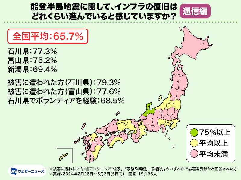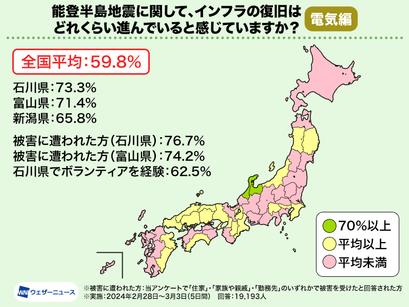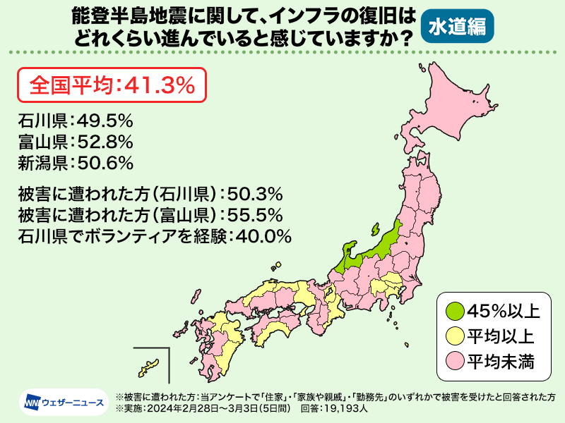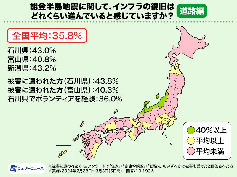 その中でも石川県では43.0%、富山県では40.8%と、被害の大きかった地域では、他の地域と比べて5ポイント程度高い結果となりました。