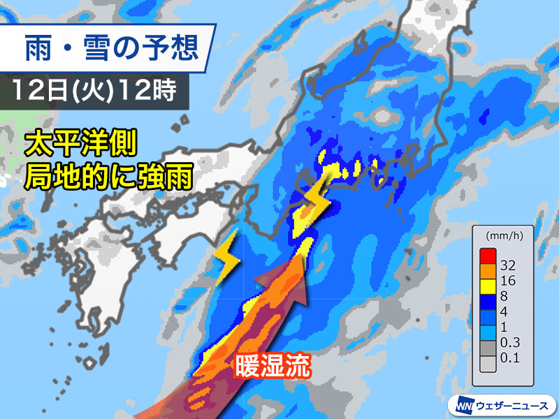 12日(火)は太平洋側で強雨に注意