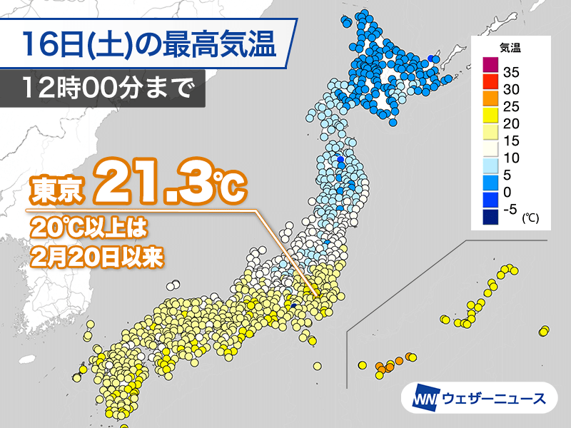 関東から九州で気温急上昇 東京は2月以来久々に20℃を超える