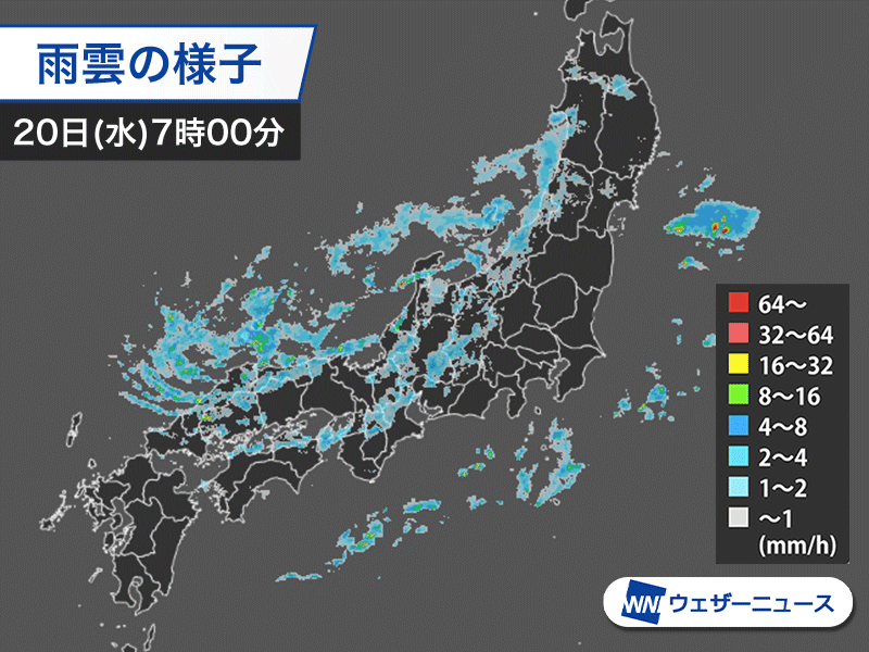 今日の朝は低気圧が北陸付近に進み、東北日本海側から北陸、近畿から中国地方を中心に雨が降っています。7時までの1時間に鳥取県米子市で3.5mm、新潟県相川で6.0mmの雨を観測しています。