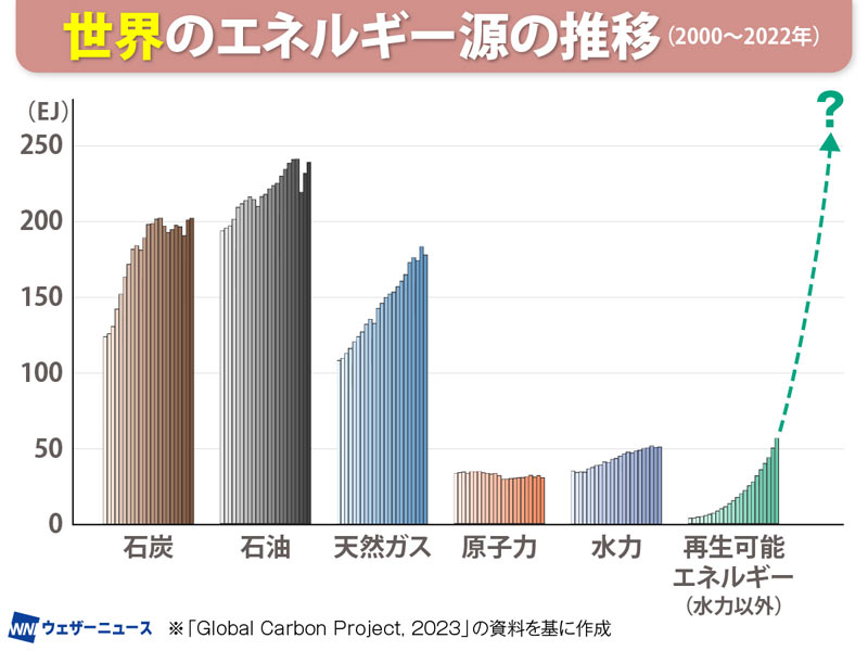 「エネルギーを太陽光発電、太陽熱の利用、風力発電、水力発電、地熱発電、バイオマス発電といった再生可能エネルギーで供給すれば、エネルギーをどんなに使っても、二酸化炭素は排出されないですよね。