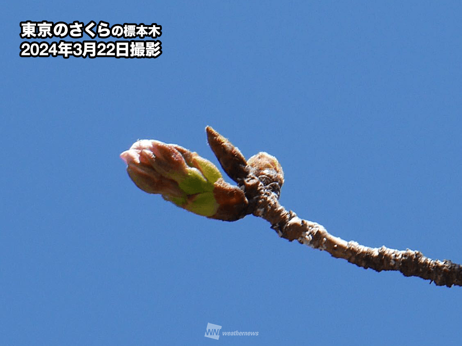 一方で2024年は、2月中旬に記録的な暖かさになったものの、2月下旬以降は一転して平年よりも平均気温が低い日が多くなりました。3月に入ってもこの傾向が変わらず、つぼみの生長が昨年よりも遅くなっていると考えられます。