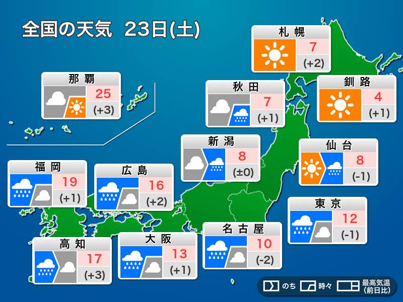 今日3月23日(土)の天気予報…