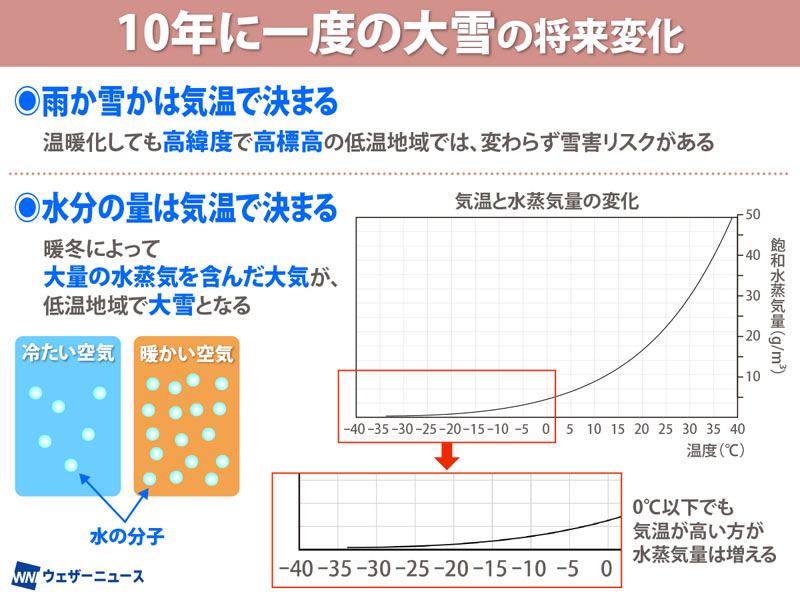 近年も北陸・信越・北海道などでたびたび局地的な豪雪となり、交通が麻痺してしまう事態が起きていますが、こうした豪雪の危険性がさらに増してくる可能性もあります」(モリタ)