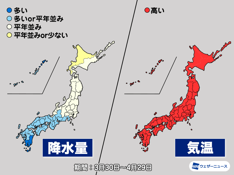 全国的に高温の4月 西日本を中心に雨が多い