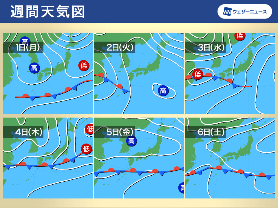 また、花粉の飛びやすい日も多い予想です。西日本や東日本では、ヒノキ花粉が多く飛散する時期へと移行してきています。ヒノキ花粉の花粉症の方は対策をしてお出かけください。