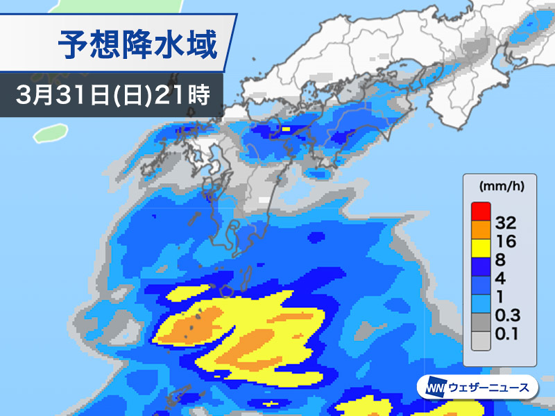 九州南部も段々と雨に