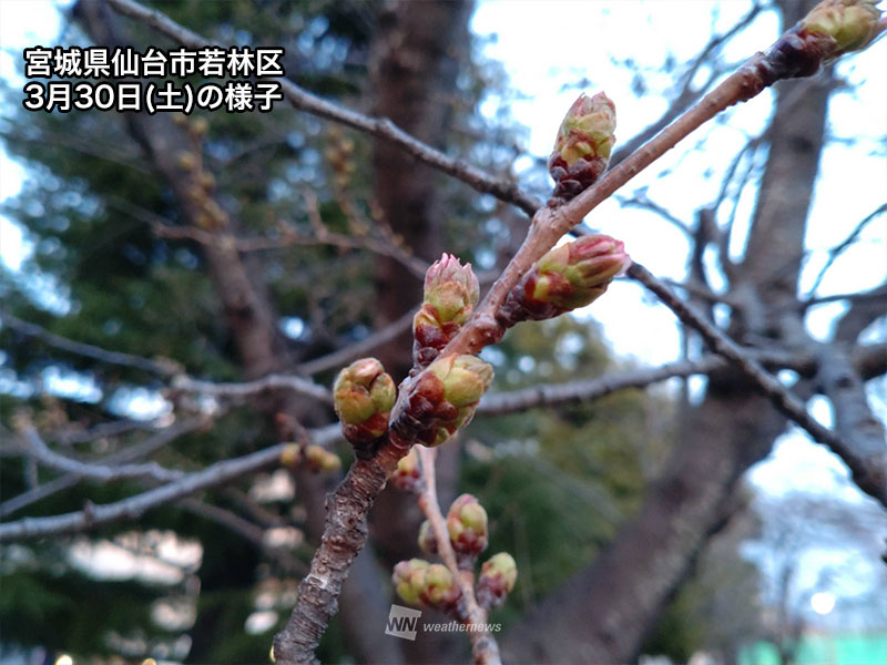 東北でもつぼみの生長が進み、南部では開花を迎えるつぼみも出てきそうです。北海道では寒い日が多いものの暖かくなる日もあり、つぼみの生長もゆっくりと進んで行きます。