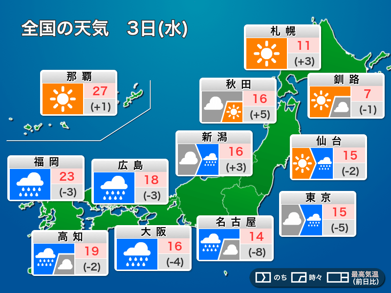 今日4月3日(水)の天気予報…