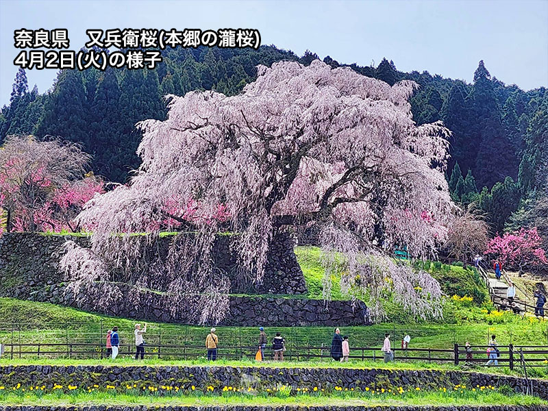 南岸に停滞する前線の影響で、週末も南部を中心に雨が降りやすく、お花見にはあいにくの天気です。ただ、7日(日)は北部ほど雨の止む所があります。気温は高く、昼間は上着なしでも過ごせそうです。
