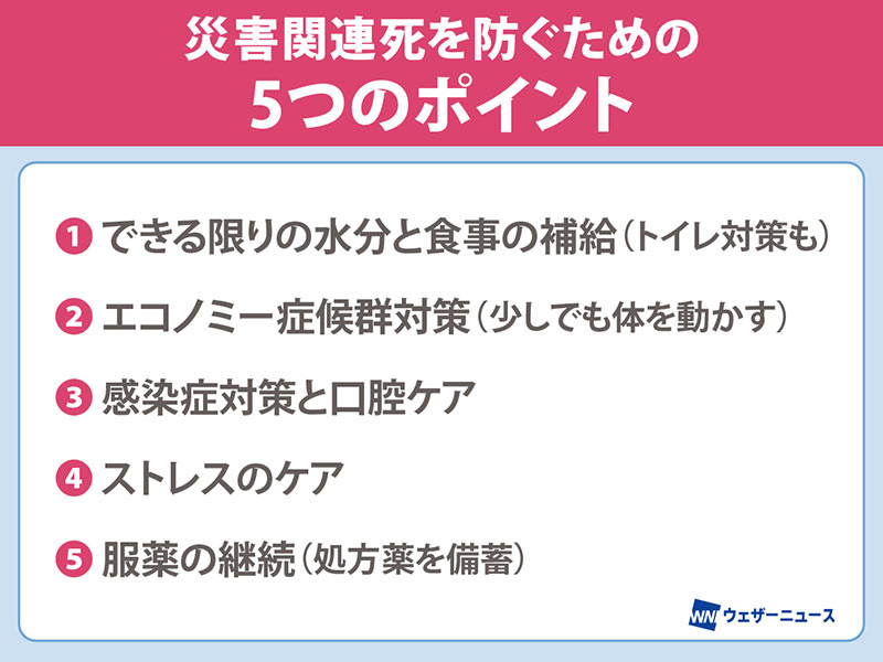 災害関連死を防ぐための5つのポイント