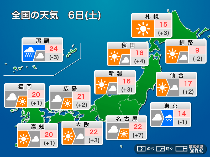 今日4月6日(土)の天気予報