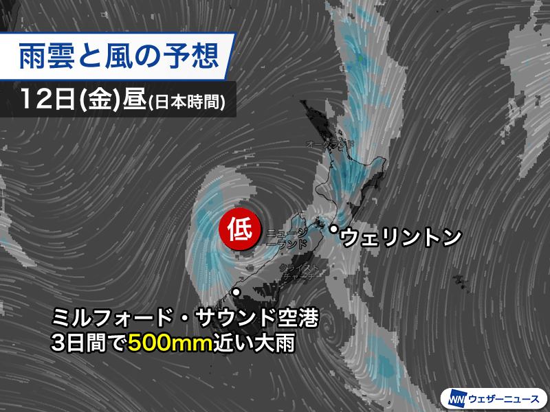 低気圧がオーストラリア方面からニュージーランド方面にゆっくりと進み、湿った空気の流れ込みやすい状況が続いています。特にニュージーランド南島の西岸では同じような所に活発な雨雲がかかり続け、局地的に大雨となりました。