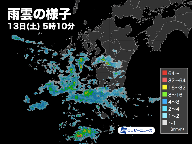 雨雲の様子 13日(土)5時10分現在