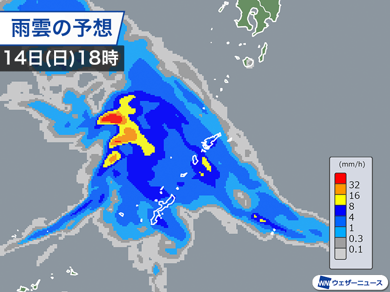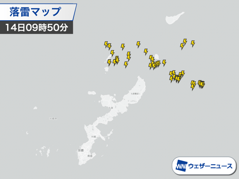 沖縄周辺で雷雲が発達…