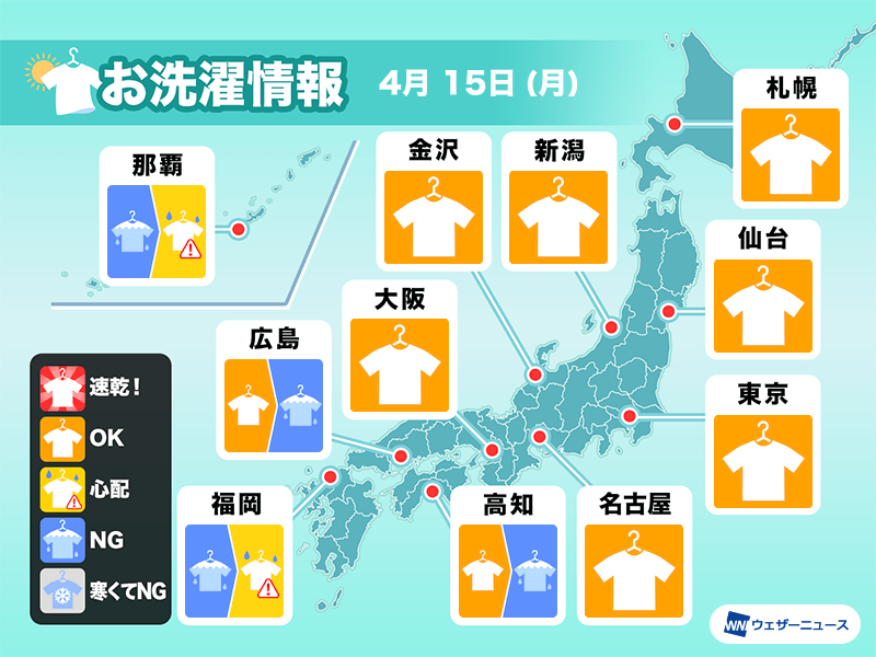 4月15日(月)の洗濯天気予報