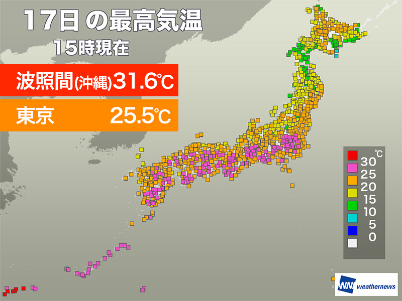 東京や大阪で夏日 沖縄・先島諸島は30℃以上の真夏日が続出