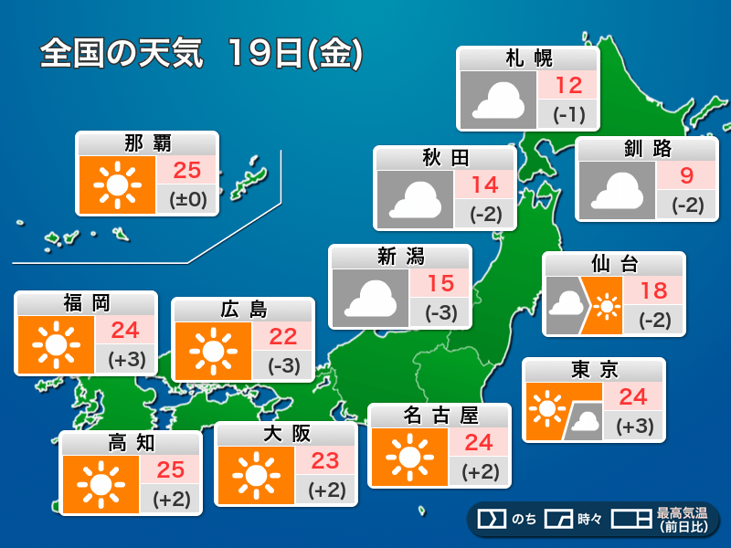 今日4月19日(金)の天気予報…