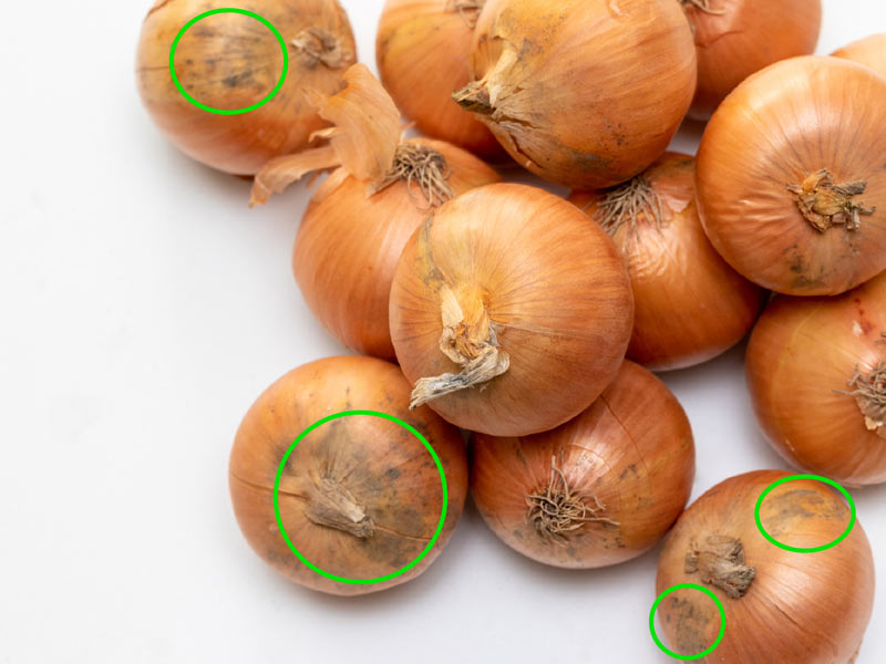 「黒いシミは玉ねぎによく見られる黒カビです。この黒カビは畑の土や種子にも存在していて、主に収穫した後、乾燥時に高温多湿の条件で発生する性質があります。