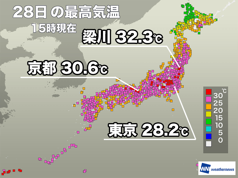 関東、近畿で今年初の30℃以上の真夏日