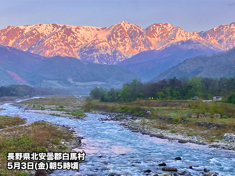今日は東西にのびる高気圧に覆われて、長野県を含む広い範囲で穏やかに晴れます。ゴールデンウィーク後半の四連休初日は絶好のお出かけ日和です。