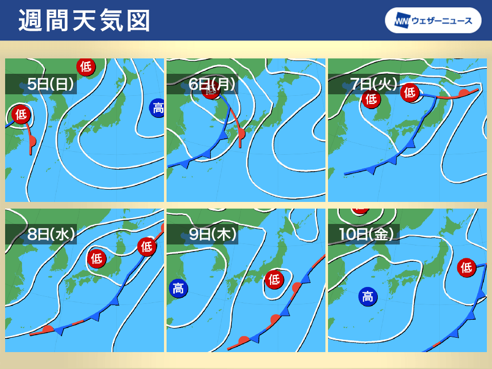 10日(金)は再び高気圧に覆われて天気は回復する見込みです。ただし、現時点では予測の不確実性が高いため、予報は変化していく可能性があります。随時、最新情報をご確認ください。