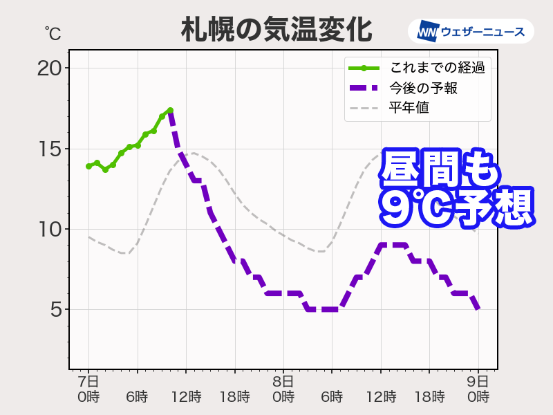 札幌なども気温上がらず防寒を