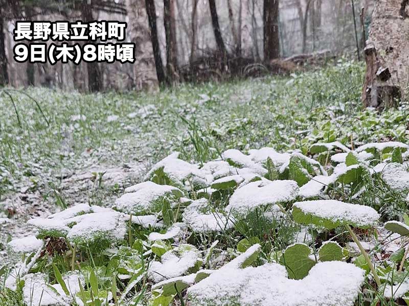 山梨県との県境に近い長野県野辺山の今朝の最低気温は0.1℃で、9時になっても1.4℃と気温はほぼ横ばいになっています。気圧の谷が抜けて天気が回復すると11℃まで昇温すると予想していますが、それでも4月上旬並みの最高気温です。