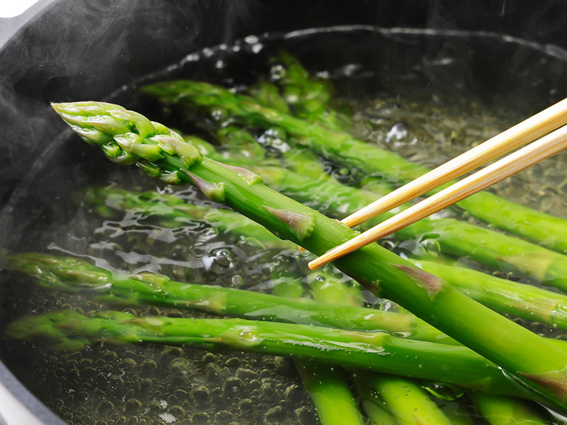 「アスパラは茹でることが多いですが、鍋が小さいからと切ってから茹でる場合があるかもしれません。しかし、これではせっかくのアスパラガスの栄養成分や旨味成分が切り口から流れ出す原因になります。