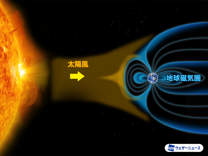 太陽からは電磁波や光だけでなく、プラズマ状態の粒子が常に放出されています。太陽風と呼ばれるこの流れは、地球磁気圏があるおかげで大部分は押しのけられています。