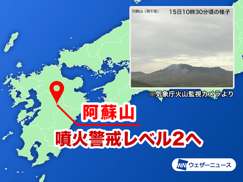 阿蘇山 噴火警戒レベル2(火口周辺規制)に引き上げ