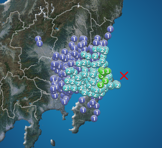 茨城県沖でM4.8の地震 茨城県と千葉県で震度3 津波の心配なし