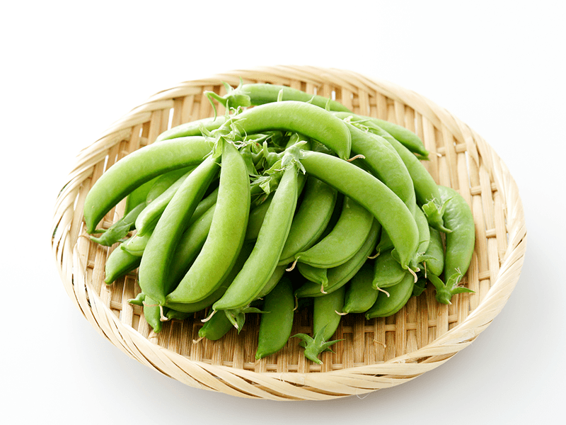 スナップエンドウには肌のツヤやハリを保つビタミンC、カルシウムの吸収を促進するビタミンKなどが含まれています。肉厚で甘みもあり、加熱してもパリッとした食感が楽しめます。旬の今、炒め物や軽くゆでておいしくいただきましょう。