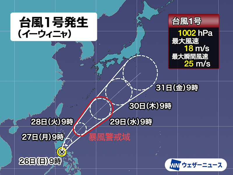 台風の発生は今年になってから初めてで、昨年12月17日に発生した台風17号以来およそ5か月ぶりです。