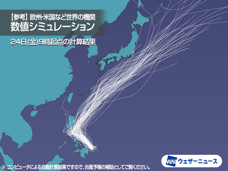 進路だけでなく、タイミングや勢力の予測も不確実性があります。日がたつにつれて誤差は縮小する見込みですので、今後の情報にご注意ください。