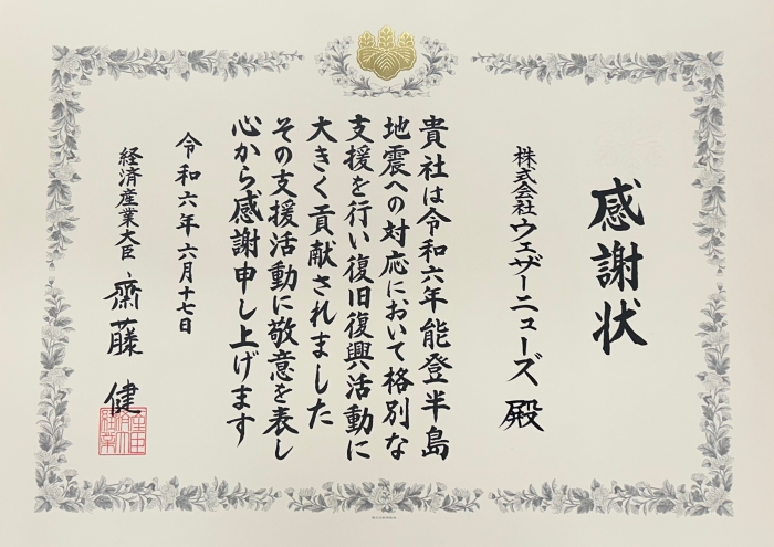 経済産業省より感謝状を授与、ドローンの安全運航支援に従事