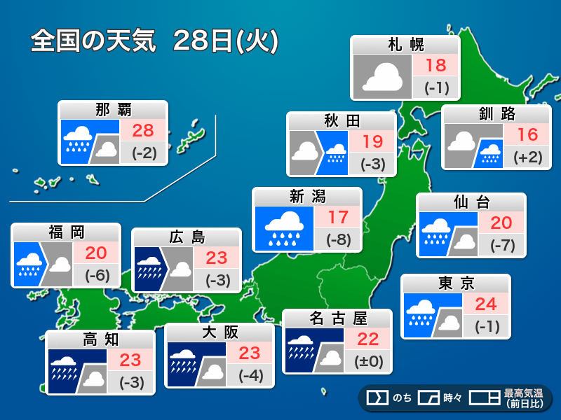 今日5月28日(火)の天気予報…