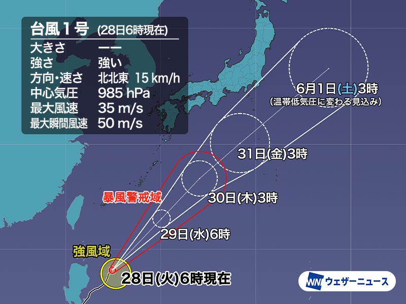▼台風1号 5月28日(火)6時