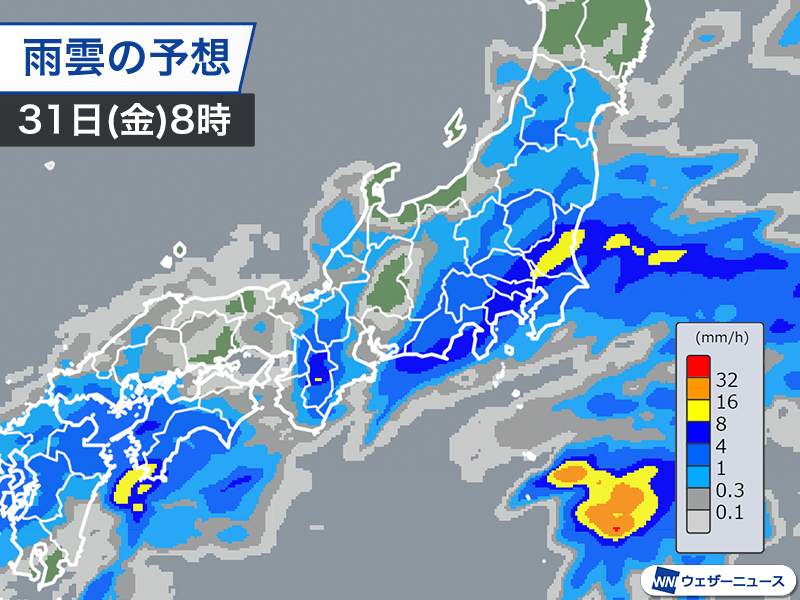 通勤時間帯に強雨の可能性も