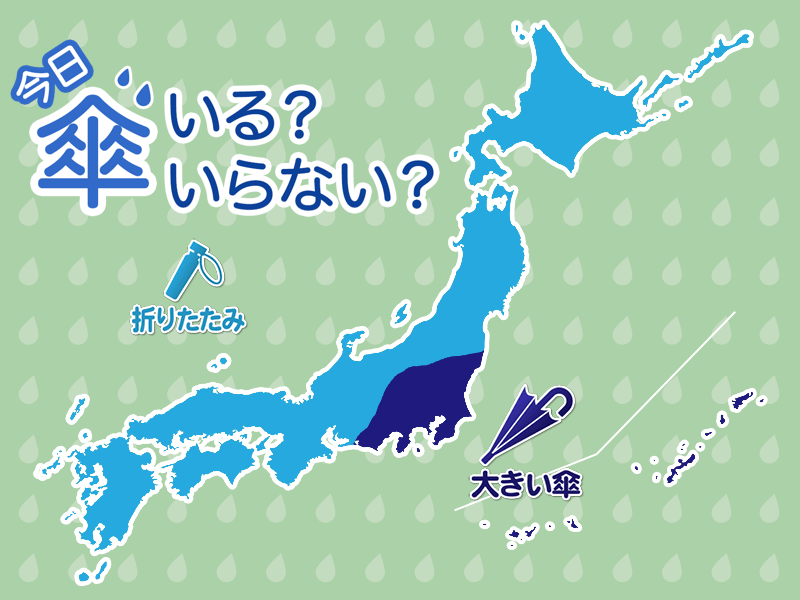 関東は低気圧が通過しているため朝は雨が降っていて、通勤や通学には大きい傘が必要です。ただ、昼間はだんだんと止んでくるため、帰りは傘の置き忘れに注意をしてください。