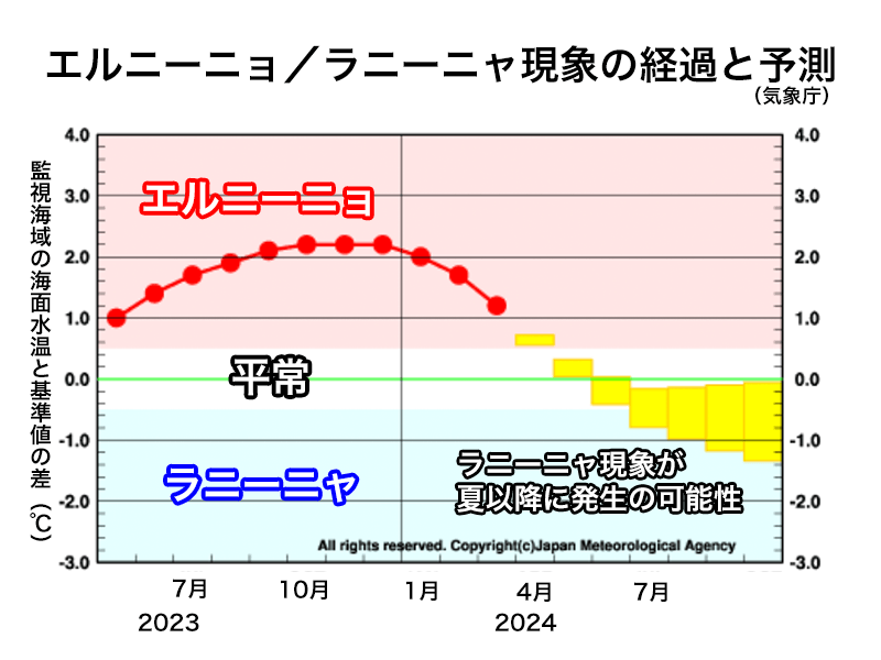 ただ、それ以外の海域も海面水温の高い状況です。エルニーニョ現象が解消しても、この傾向はしばらく続くとみられます。日本でも夏の気温は全国的に平年より高い猛暑の予想です。